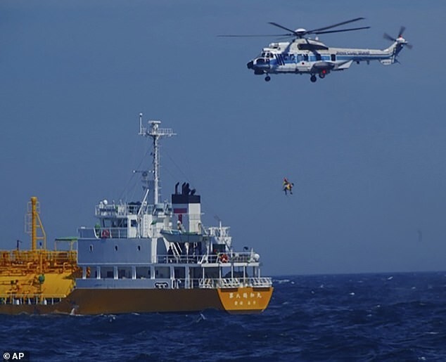 The captain of the ship asked for help from the passing tanker Kakuwa Maru No. 8, transporting liquefied gas. Two tanker crew members jumped into the sea and rescued the girl. A Coast Guard helicopter brought her to land.