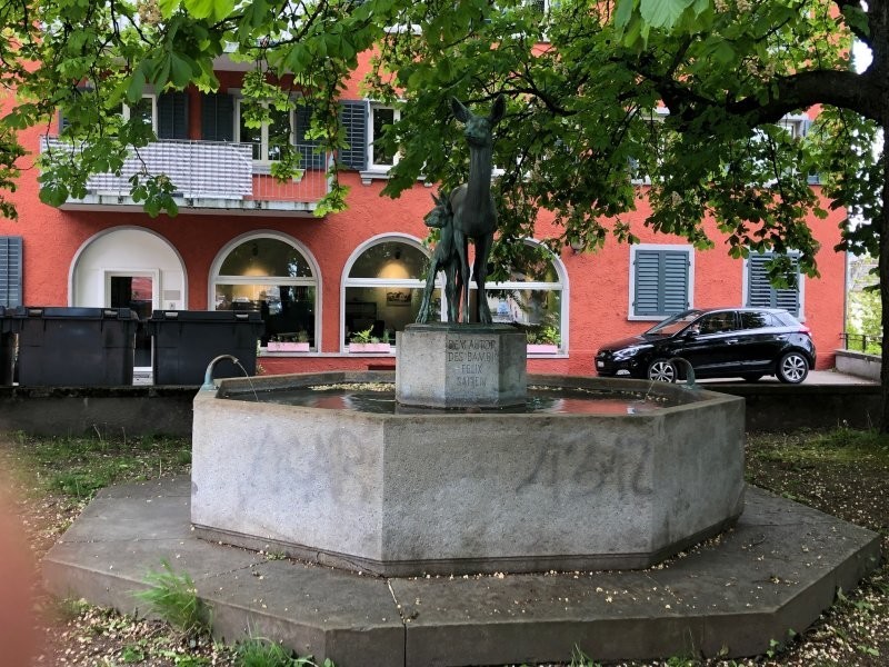 Salten moved to Zurich, where he spent his last years in difficult financial straits. In fact, the only source of income remained funds received from book sales from abroad. Salten died in 1945 and is buried in the city's oldest active Jewish cemetery. The fountain in honor of the author and his character was designed and executed by the Swiss architect Arnold Hugle. In 1950, a plaque was added describing the structure's connection to Bambi and Salten.