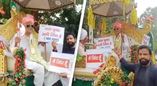 An Indian proved to the authorities that he was alive only by a crime (5 photos)