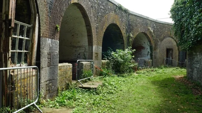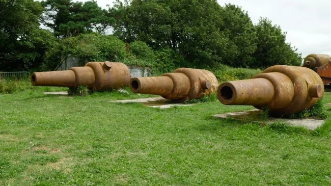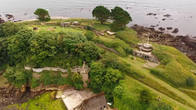 The piece of land still contains old barracks and many artillery pieces with shell pits and underground powder magazines.