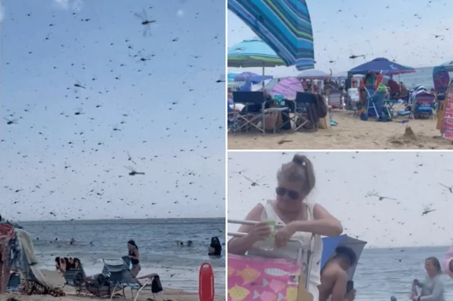 Misquacut Beach, which is located in the small town of Westerly (Rhode Island, USA), suffered a terrible misfortune this weekend: a swarm of dragonflies swooped down and chased away vacationers who were calmly sunbathing and swimming in the ocean. Eyewitnesses compare what they saw with the apocalyptic scenes described in the Bible.