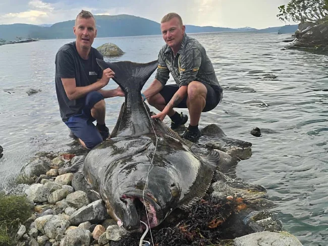 43-year-old Lars Kohlsdorff appears to have caught the biggest fish of his life - a giant halibut measuring 2.2 meters. For many years, the man has been regularly traveling to Scandinavia with a group of fishing friends, and this time he stopped near Tromsø, Norway, which is 350 kilometers north of the Arctic Circle.