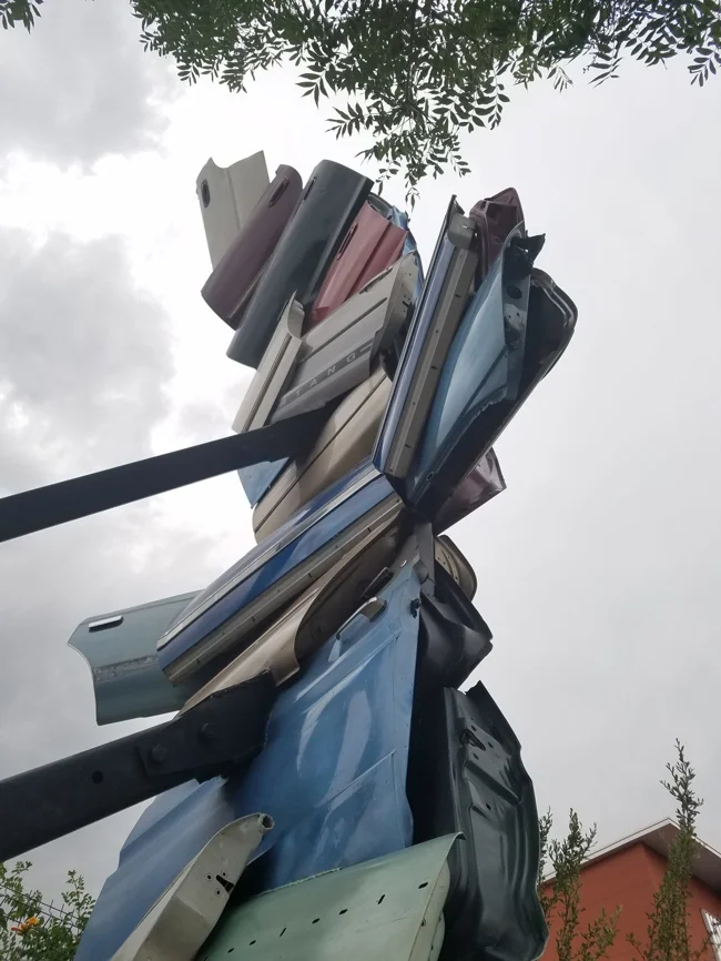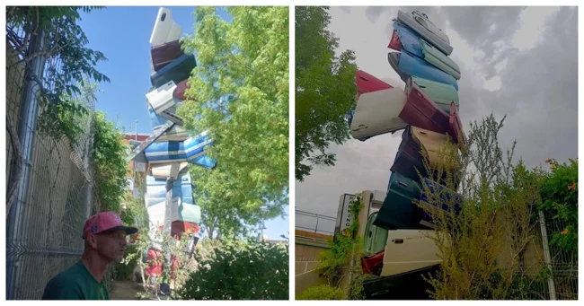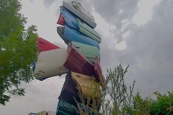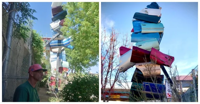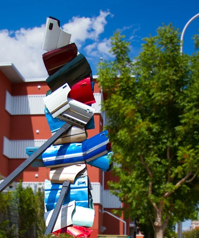 The 25-foot-tall sculpture is made up of 30 colorful car doors stacked on top of each other. The unusual piece of art was installed in 2017 and was created by former Albuquerque resident Christopher Fennell, who now lives in Alabama.