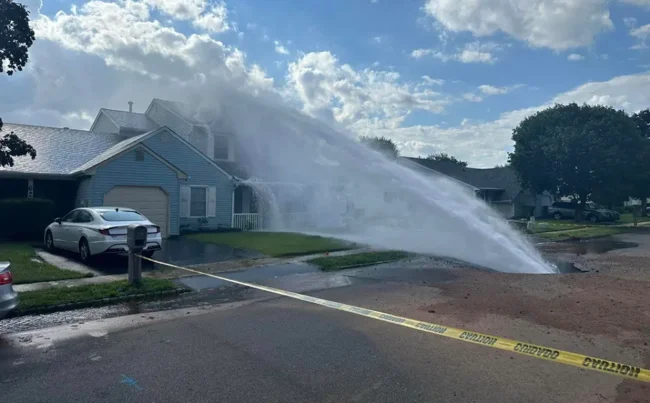 A home in Edison, New Jersey, faced disaster when a water main burst and a geyser of water shot out onto the front of the home.