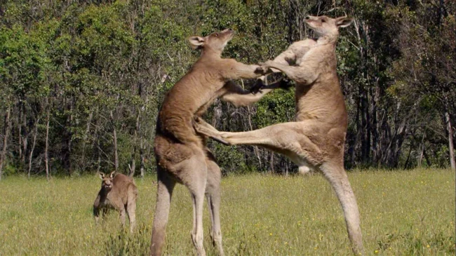 So it turns out that female kangaroos open their hearts to love for only a couple of weeks a year. During this short period of time, the female attracts the attention of all the guys in the area. But only one male, the strongest and most skilled in a fight, can achieve what he wants. Fights between kangaroos take place in full contact. It almost never comes to death, but bruises, sprains and fractures are common. This is the irony of a member of a fight club: only a few receive an award, but everyone, without exception, gets hit on the head.