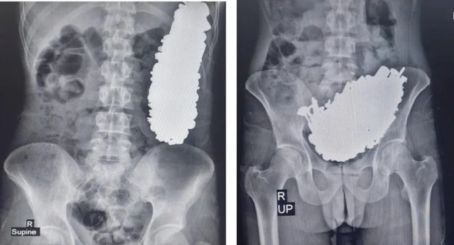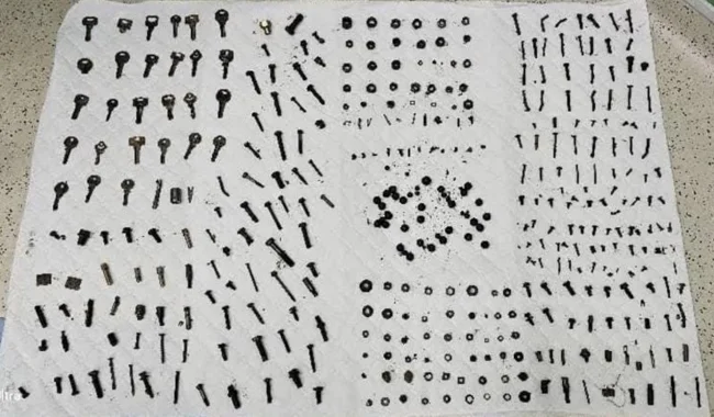 A local resident sought medical attention due to chronic stomach pain and frequent vomiting, which prevented him from eating or drinking. Doctors took an X-ray and discovered a large accumulation of metal objects in the patient's stomach, which prevented the body from functioning normally. According to doctors, the man had been swallowing metal objects for at least three months.