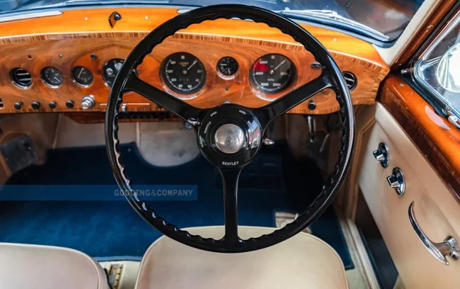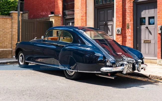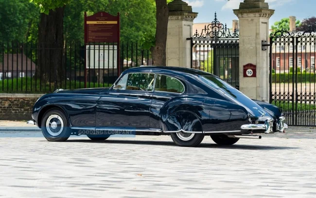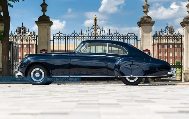 The Gooding & Company auction will feature a Bentley R-Type Continental Fastback coupe. The 1954 car was considered the fastest four-seater of its era. Fewer than 200 of these cars were built. Experts expect the deal to fetch between £650,000 and £750,000.