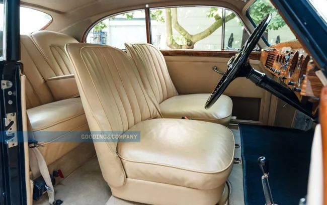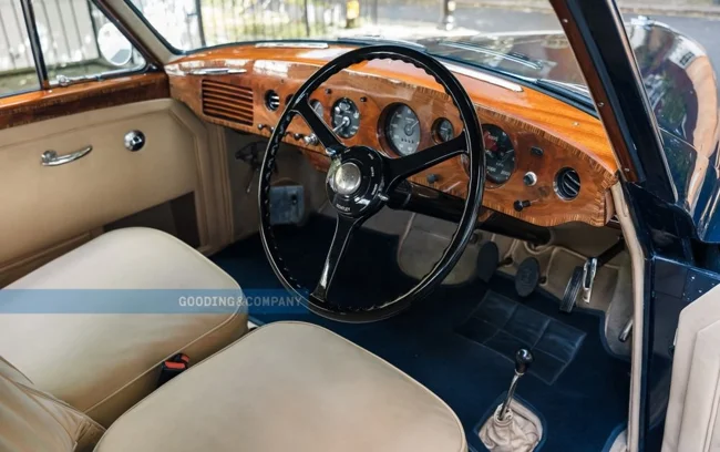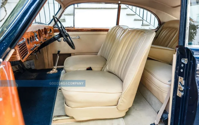 The example for sale is painted Oxford Blue. The interior is trimmed in light beige leather. After five owners in the UK, the car was in the USA from 1985 to 2005. Now it is back in its homeland and is being sold after a complete restoration that took two years. During this process, the car was equipped with air conditioning and electric windows.