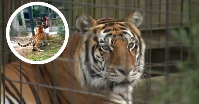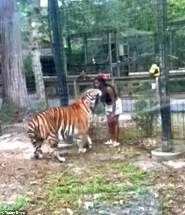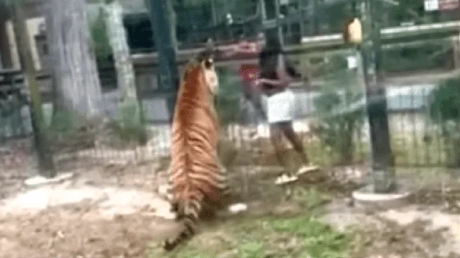 A visitor to the Kohanzik Zoo in New Jersey climbed over a fence to tease a Bengal tiger. The woman stuck her hand through the metal fence and tried to attract the attention of the predator.