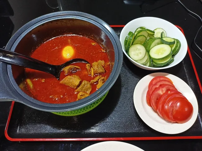 This is a coconut milk based dish with meat and lots of spices.