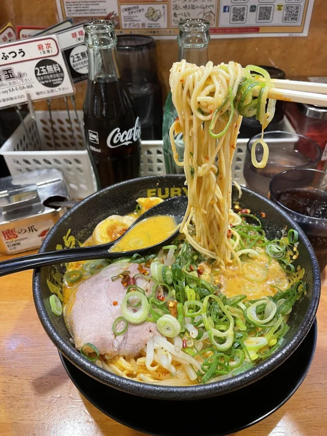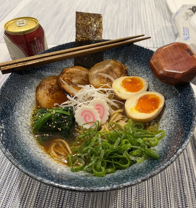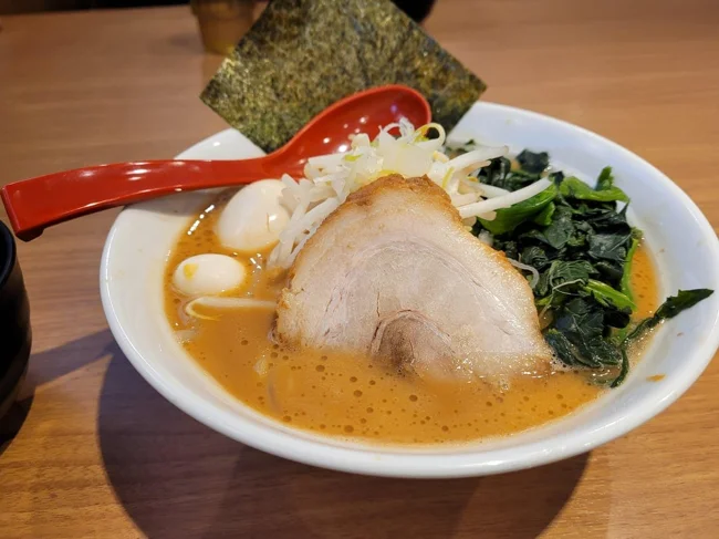 The soup recipe was created in 1974 in Yokohama. The dish consists of thick noodles and a broth that is a mixture of creamy tonkotsu (pork broth) and soy sauce. The filling includes pork, chopped seaweed, leeks, and spinach.