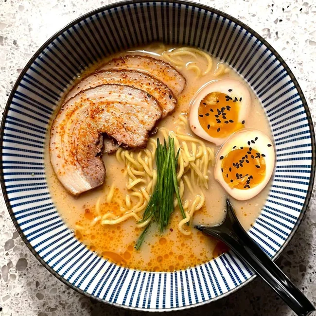 The calling card of the island of Kyushu in Japan. The soup is prepared on the basis of pork and pork bones. The broth for this dish should be cooked for at least six hours.