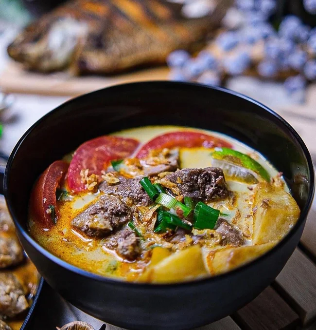 This flavorful soup is typically made with stewed beef and other traditional Indonesian ingredients like lime leaves, lemongrass, ginger, and chili peppers. However, the key ingredient is Indonesian black walnut.