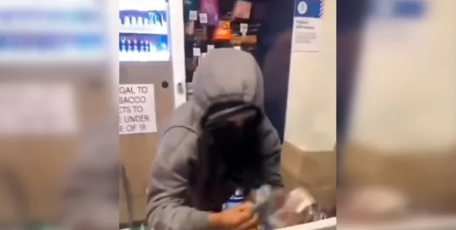 The incident took place in a Tesco store in the Stratford area of east London. The video shows how store employees helplessly watch the masked robber, who steals money from the cash register. The attacker appeared to be carrying a large bag filled with tobacco products and cigarettes.
