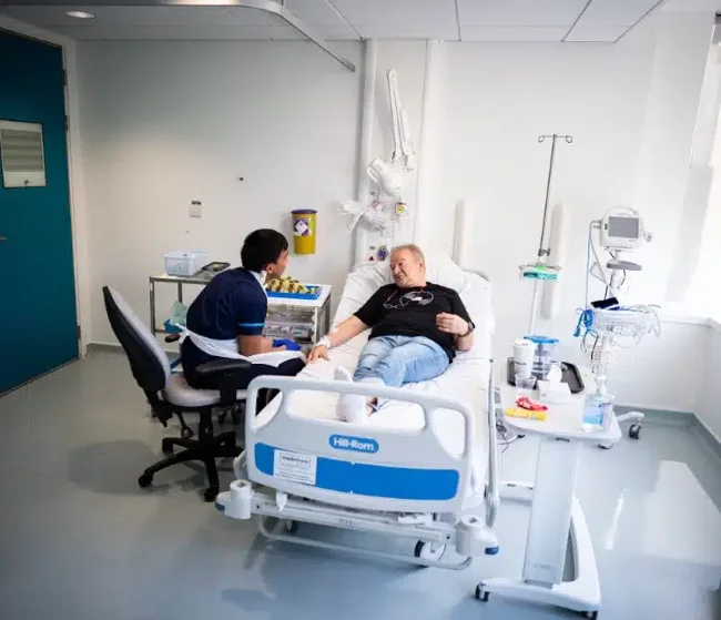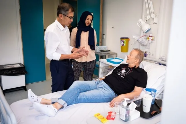 Professor Siou Ming Lee and Dr. Sarah Benafif talking to a patient