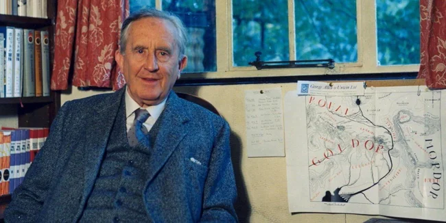 1. John R. R. Tolkien in his study with a map of Middle-earth he drew