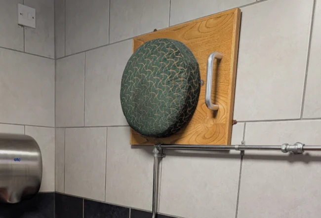 In the UK, in Staffordshire, a local pub has come up with a way to keep customers who have had too much to drink and can't get to the urinal on their feet in the toilet. A pillow has been attached to the ceiling for such customers.