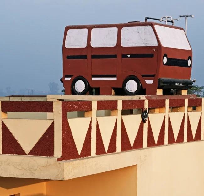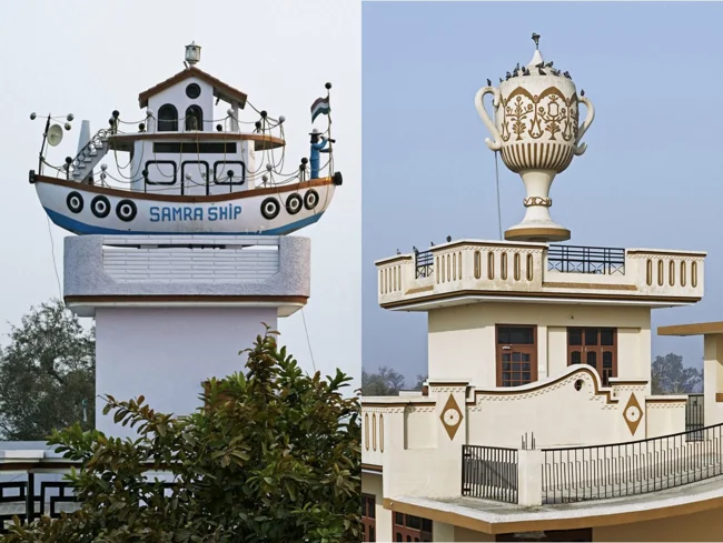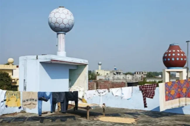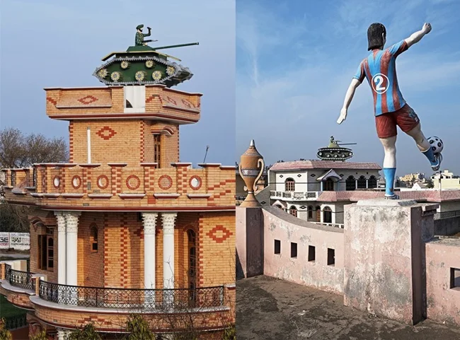 A replica of an Air India plane, a replica of an army tank, and suddenly… a globe! And all these beautifully decorated water tanks on the roofs of private houses.