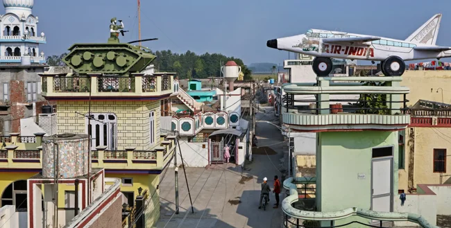 Why are there tanks, planes and elephants on the roofs of this village (8 photos)