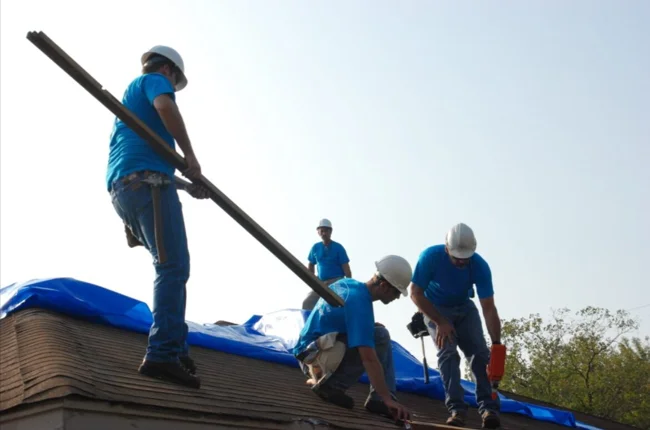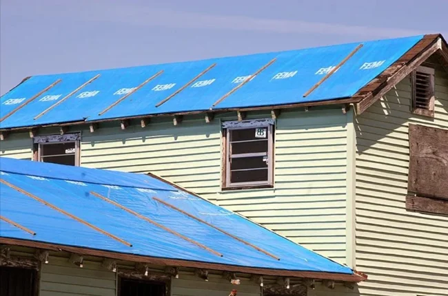 Despite the lack of any rational reason or scientific basis for this theory, the Chinese cover their roofs with blue tarpaulins or paint them blue as a protective measure.
