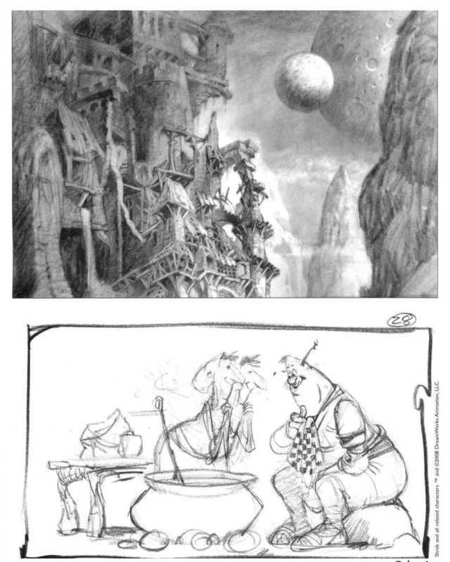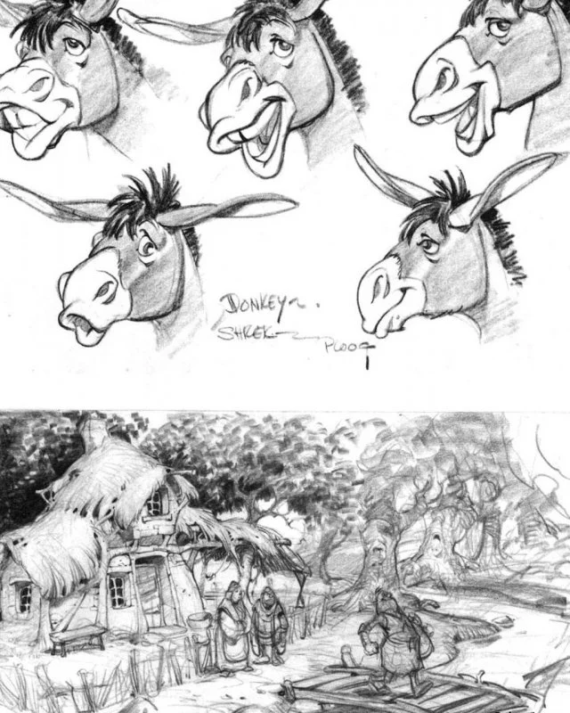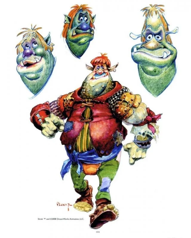 A new Shrek movie is currently being filmed and will be released in a few years. We're all used to the image of the funny orc from the cartoon, but did you know that the cartoon, based on the 1990 William Steig fairy tale, was originally conceived as a darker fairy tale. This is reflected in these early examples of concept art.
