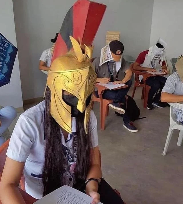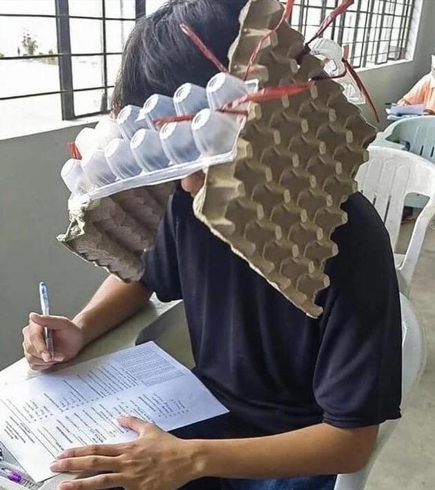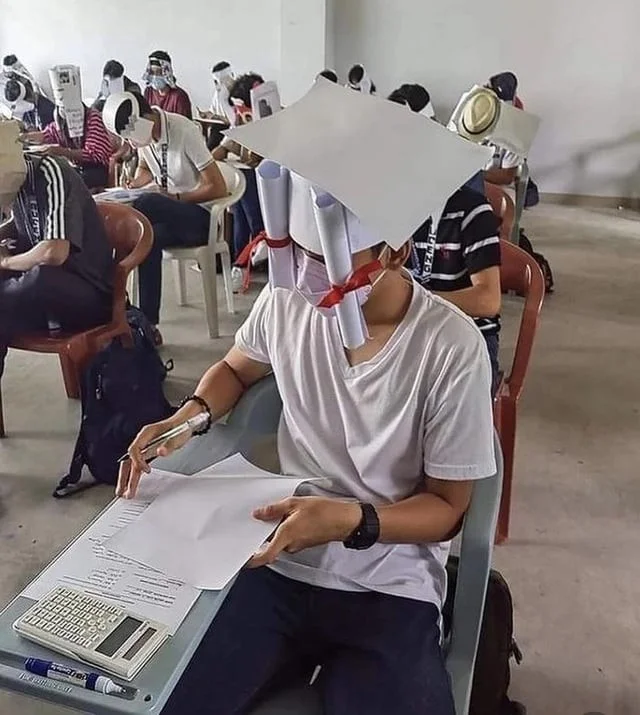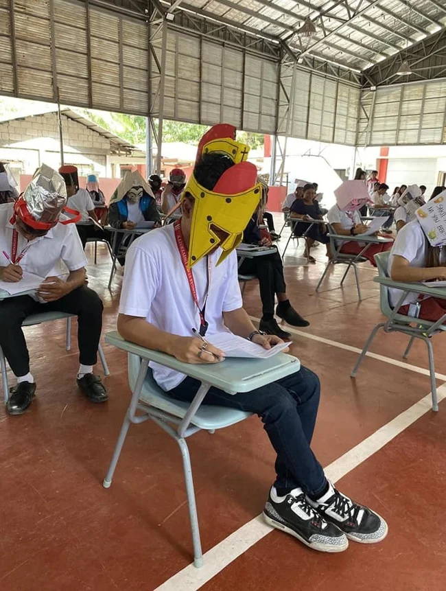 Cheating on exams is an age-old problem. To make exams less stressful and prevent cheating, schools and colleges in the Philippines have offered students the chance to create their own “anti-cheating” hats. Students can get creative, as the hats (and masks) come in a variety of designs — a great way to show off your personality and amuse your classmates.