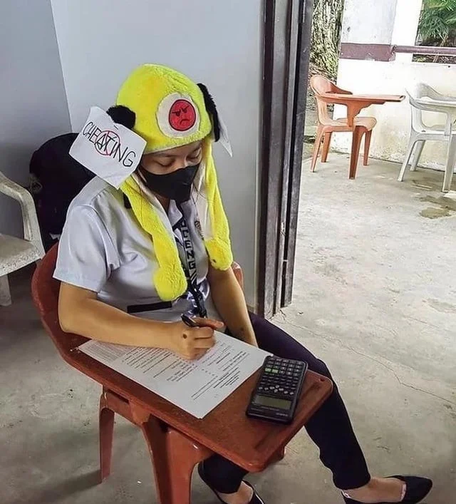 Filipino students are using a fun way to combat cheating on exams by wearing homemade “anti-cheating hats.” It’s fun and takes the fear out of exams, according to their teachers.