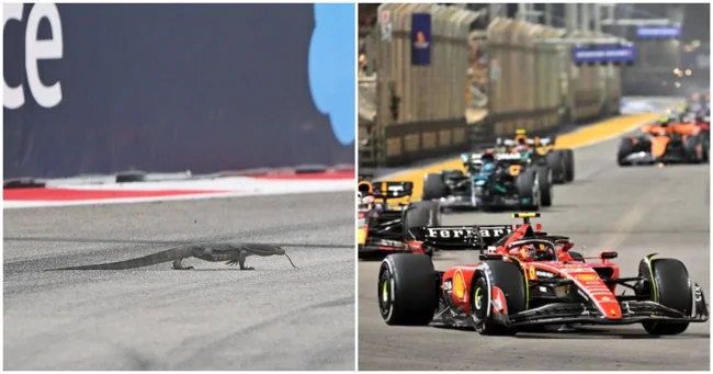 A monitor lizard in Singapore decided to compete with Formula 1 racers (4 photos + 1 video)