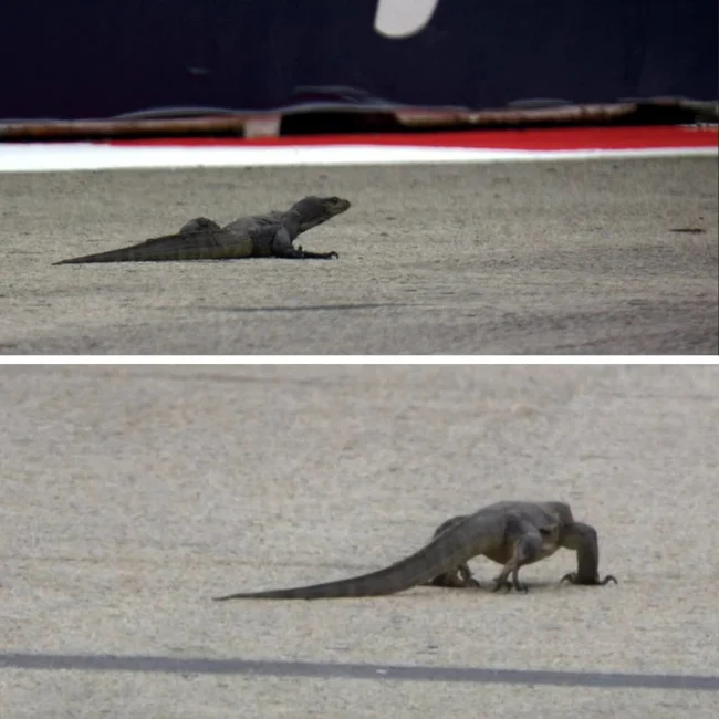 The monitor lizards are diurnal, and all three times they were spotted on the track during the Singapore race weekend, they were seen shortly before sunset.