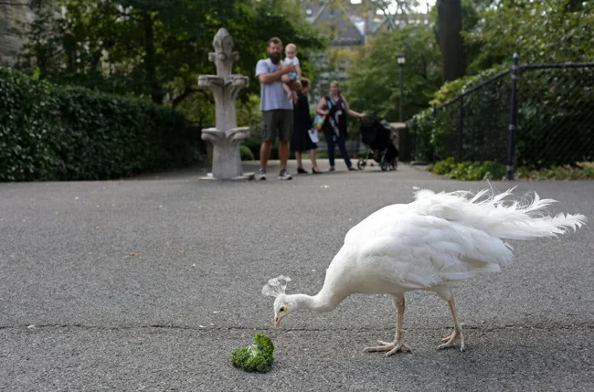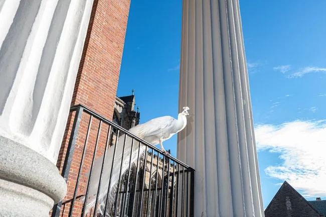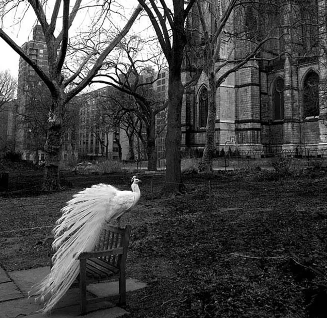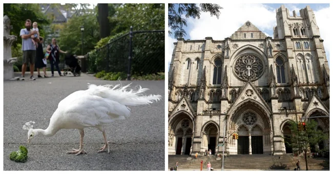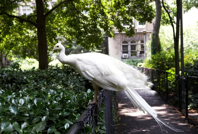 Locals who drop by the Church of St. John the Divine in New York City have long known to look out for its most glamorous patrons: three peacocks. Harry, Jim, and Phil, named after previous heads of the church, are beloved members of the congregation. Phil, the white peacock, even has his own social media account.