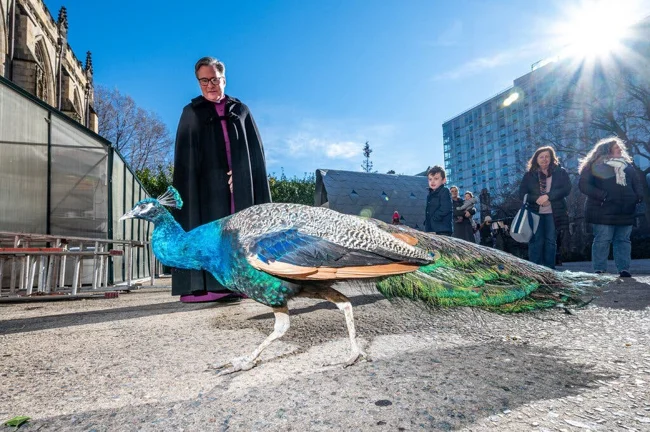 The cathedral, famous for its annual "Blessing of the Animals," has been home to peacocks since the 1980s. Its gardens are also home to the city's honeybee sanctuary.