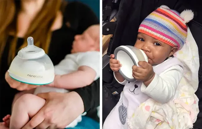 This new bottle has a larger surface area than a traditional bottle, so milk can be heated and cooled twice as fast, ensuring all the important nutrients are preserved.