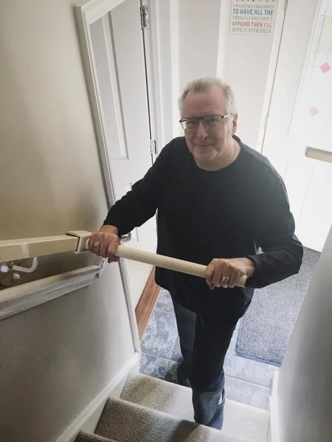 This device is a multifunctional handrail with a moving support track. It is easy to move and then fixed in place. This is a useful invention for the elderly and for those recovering from strokes, head injuries and other diseases.