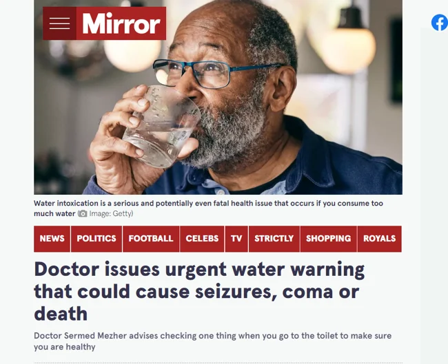 Doctors warn that drinking too much water can be dangerous. Excess fluid in the body can lead to serious consequences, such as headaches, nausea, confusion, seizures, and in severe cases, coma or death.