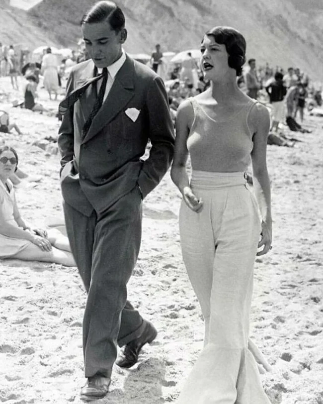 29. A couple strolling on the beach, Netherlands, 1930s