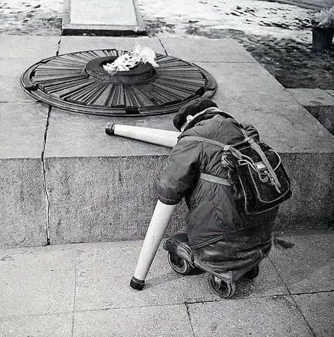 24. A veteran at the Eternal Flame on the anniversary of Victory Day, 1966