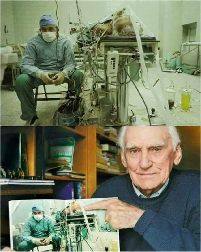 The bottom photo shows patient Tadeusz Zitkiewicz 25 years later. He died in 2017, 30 years after the operation, outliving Dr. Religa. The doctor passed away in 2009.