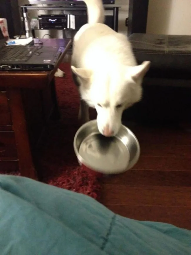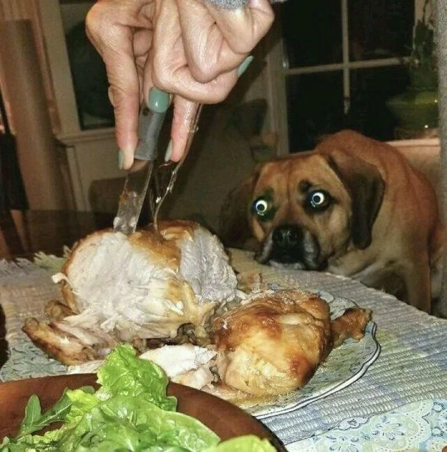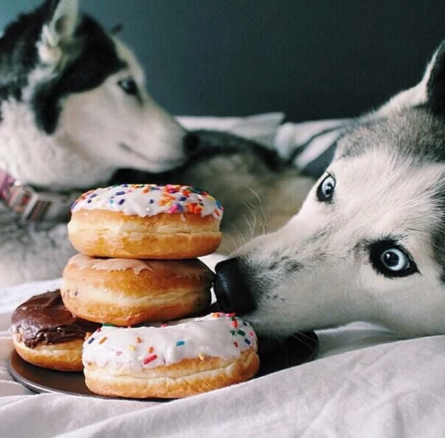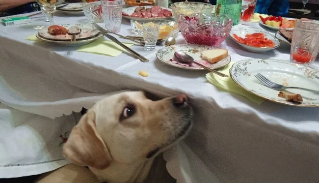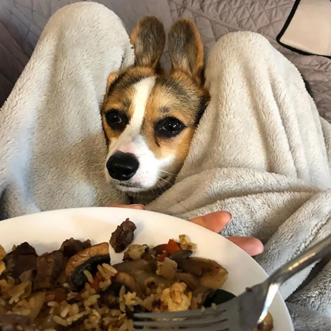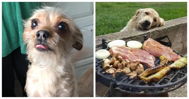 Our four-legged best friends successfully use their cuteness and lure the coveted piece from their owners, leaving funny photos as a keepsake.