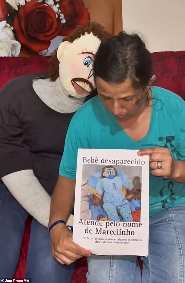 Meirivon Rocha Moraes, 37, from Brazil "married" a life-size doll named Marcelo and "raises" three children - "newborn" twin daughters Marcela and Emilia and a two-year-old son Marcelinho, all of whom are stuffed animals. Her son was recently reportedly kidnapped.