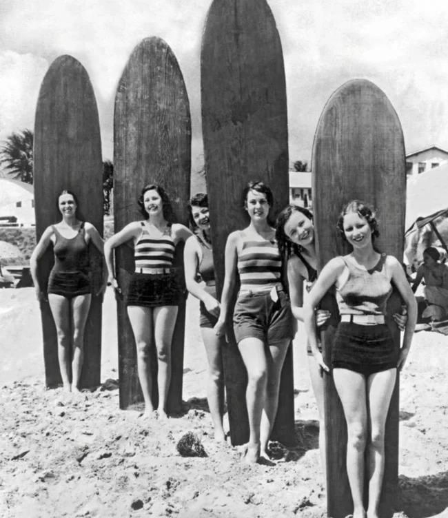 9. Surfers on a beach in California, 1920s