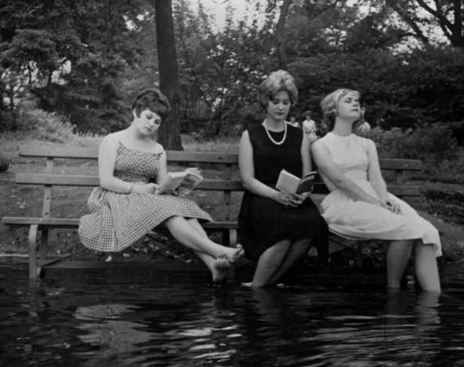 15. Girls find refuge from the heat in Central Park, New York, 1961