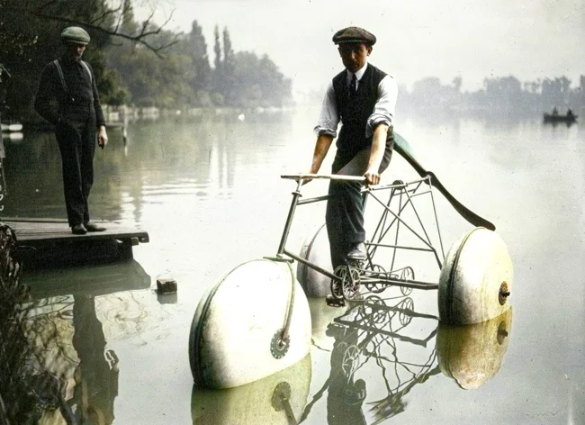 A descendant of this inventor resumed the production of these water bicycles a year later. And now you can ride them in Cannes.