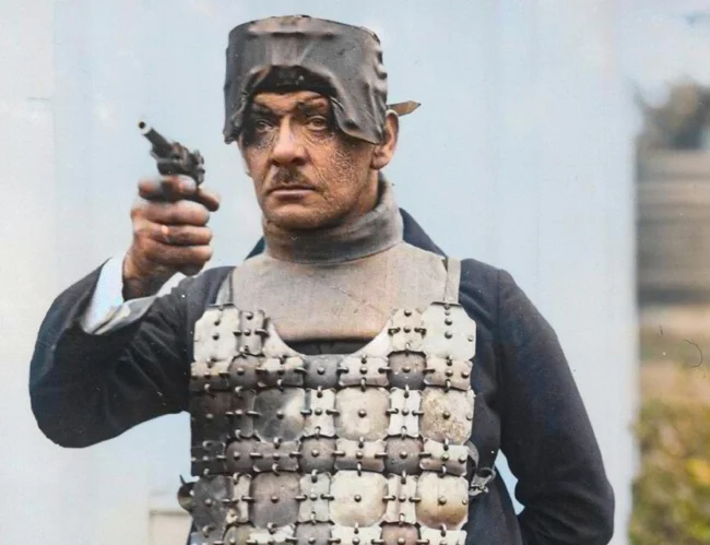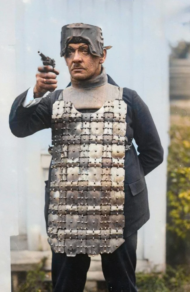 A prototype of a bulletproof vest for police. Germany, 1930.