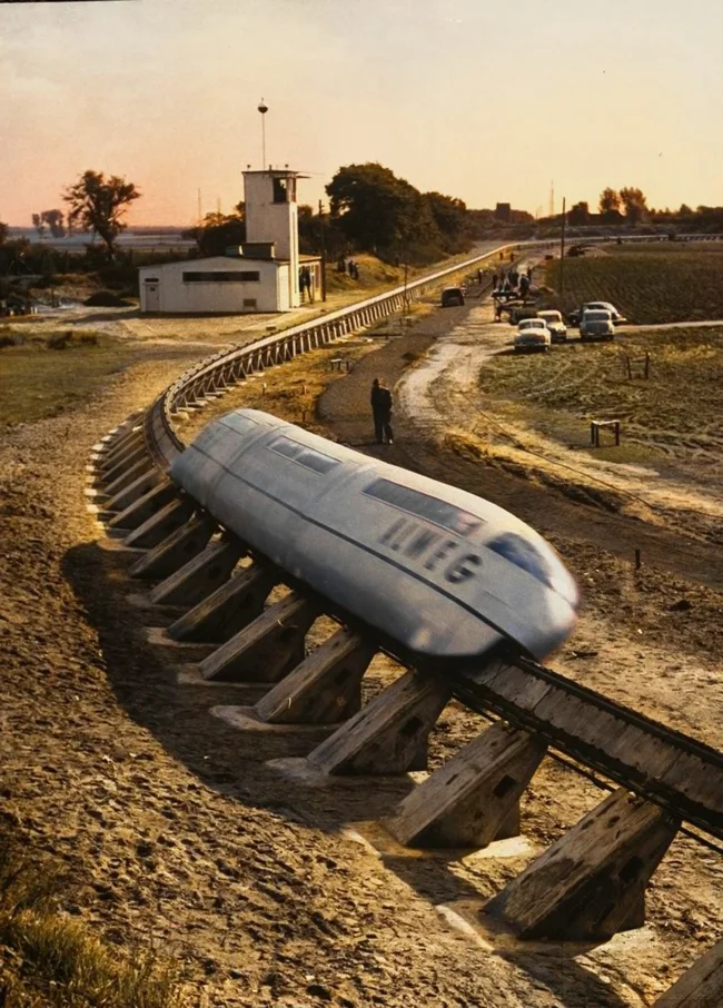 Test track of the ALWEG monorail company in Fühlingen. Suburb of Cologne, Germany, 1952.