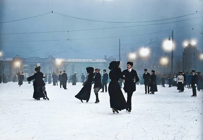 Beautiful photo. Beautiful ladies and gentlemen enjoying music and dancing on ice.