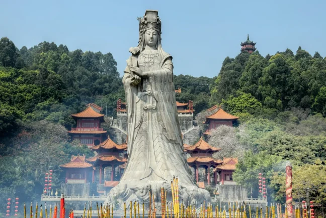 Travelers who get the chance to sit next to Mazu statues are considered lucky and will have great fortune.