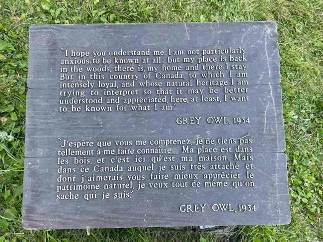 His cabin has been restored. It was originally elevated above the water to provide a more suitable habitat for beavers. Gray Owl, Anahereo, and their daughter are buried nearby in a quiet wilderness area frequented by deer, moose, bears, and, of course, beavers.