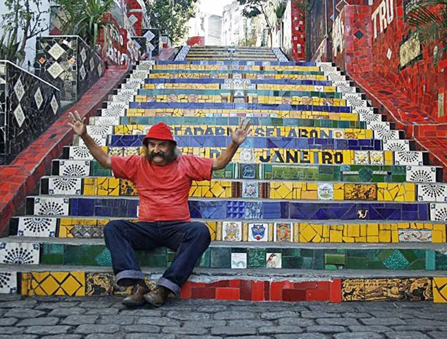 The name Escadaria Selaron, which means "Stairs of Selaron" - the name of its creator, Chilean artist Jorge Selaron. He came to Rio de Janeiro in 1980 and settled, let's say, in a far from prestigious area of the city.