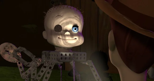 A strange, creepy creature assembled by Sid from parts of other toys stands out especially. However, it later turns out that she and the other "mutated" toys are not evil at all, but on the contrary, friendly and ready to help.