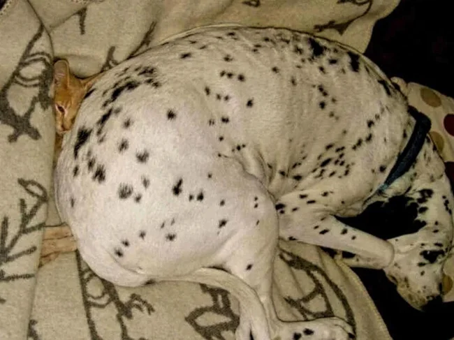 Hilarious cats and dogs sharing a bed with each other (31 photos + 1 video)